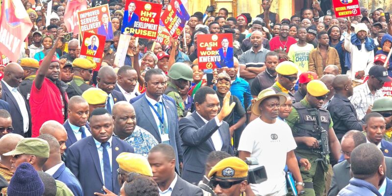 President Hakainde Hichilema has abandoned a scheduled presidential address at the recently gutted Chiwempala Market in Chingola after unruly illegal miners started throwing stones at the podium.