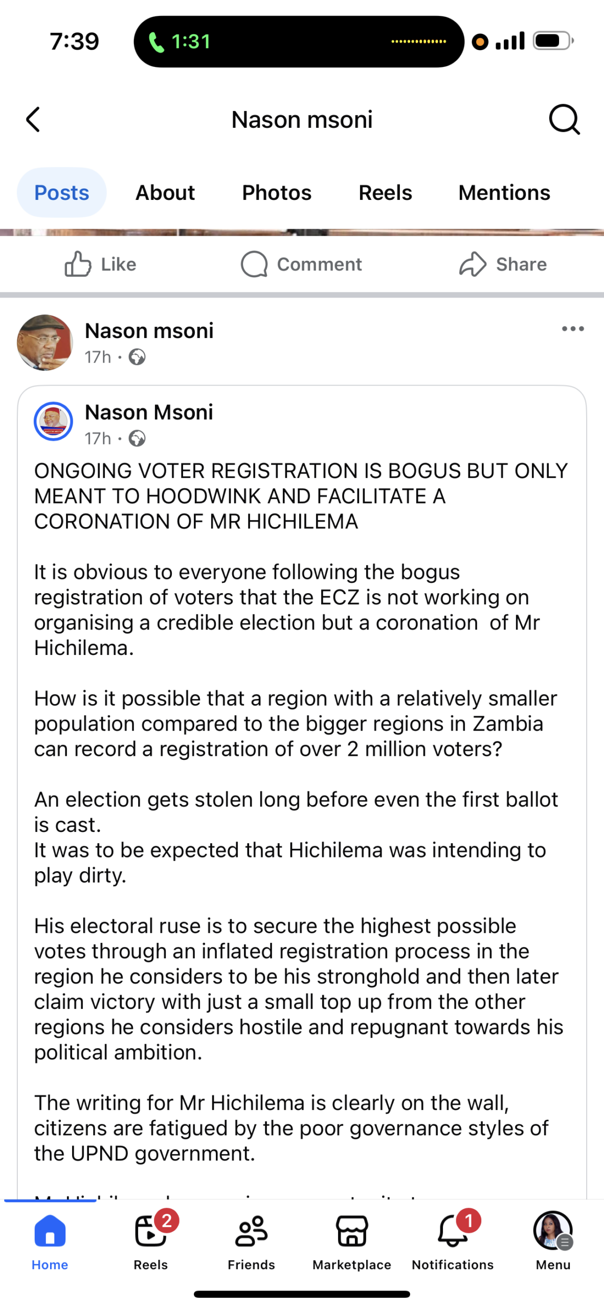 All People’s Congress (APC) president, Nason Msoni, has questioned the credibility of the ongoing voter registration exercise, describing it as “bogus” and a scheme to favour President Hakainde Hichilema ahead of the 2026 general elections.
