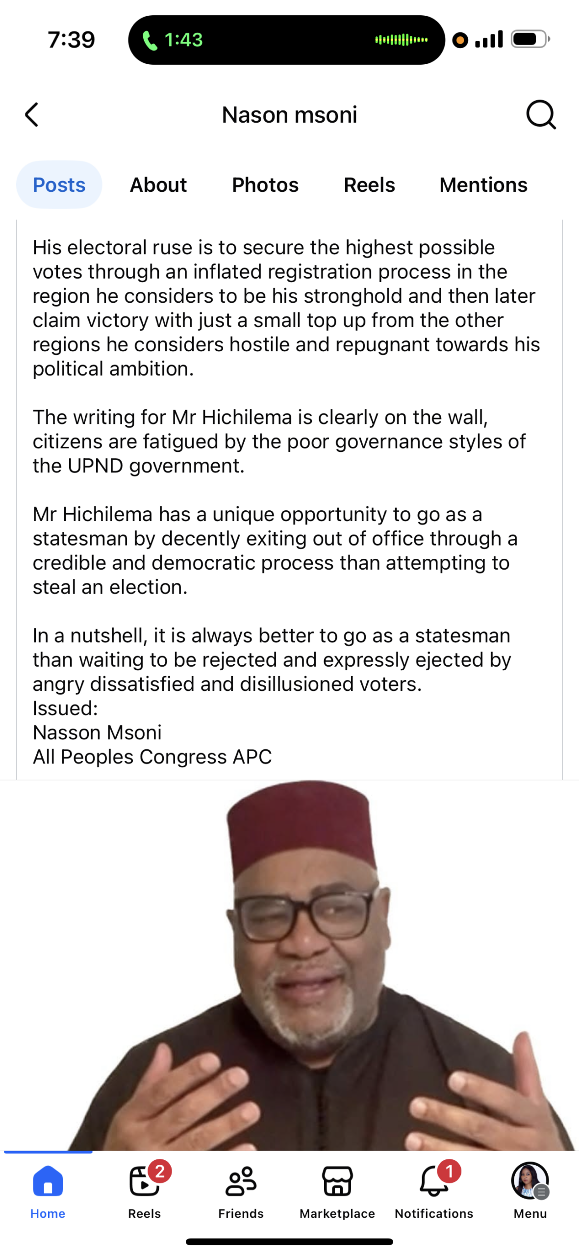 In a statement issued on Saturday, Msoni said: